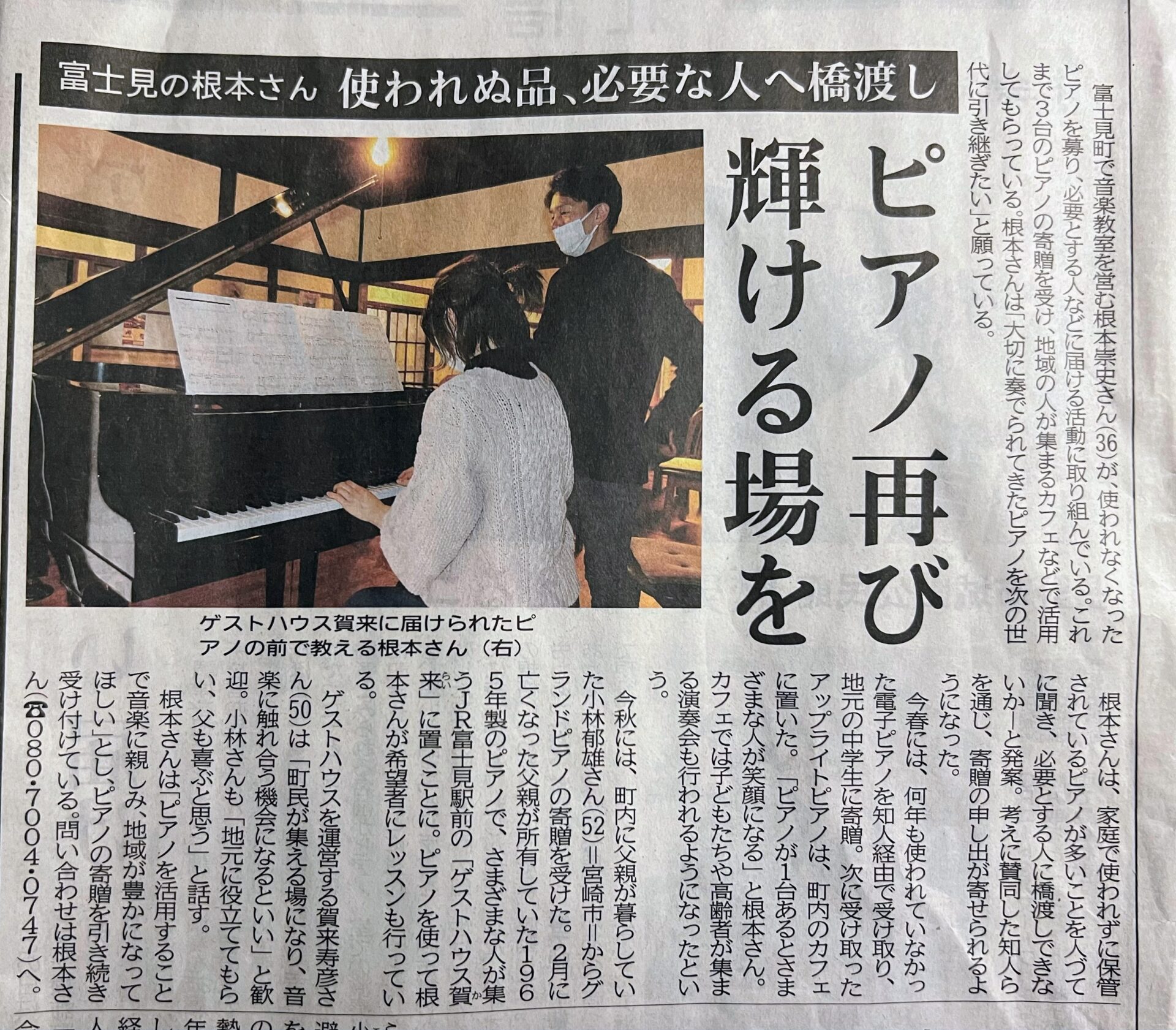 「ピアノの記事をみてお電話しました。うちのピアノも使ってもらえますか?小諸ですが」