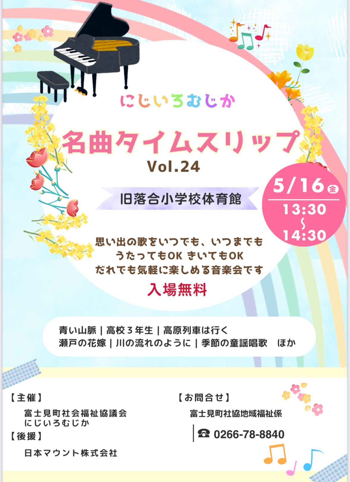 5/11(日)は、富士見町の町制70周年記念式典がありました。私は子どもたち(小学1年生〜中学三年生)の合唱の指導、当日の伴奏と指揮をさせていただきました。